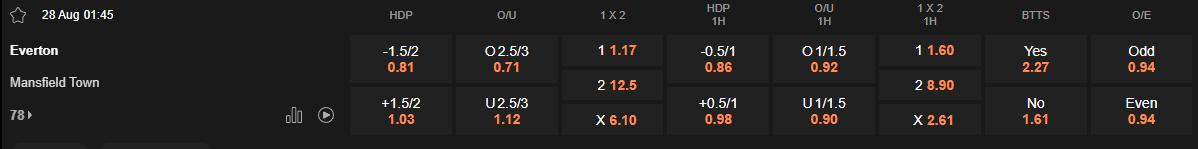 Soi kèo Everton vs Mansfield lúc 1h45 ngày 28/8/2025