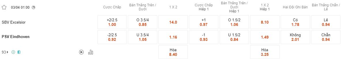 Soi kèo Excelsior vs PSV lúc 1h00 ngày 3/4/2024