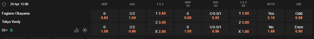 Soi kèo hiệp 1 Fagiano Okayama vs Tokyo Verdy