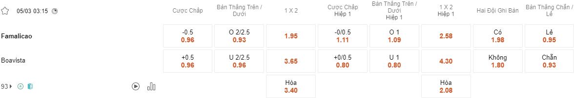 Dù đang đứng ở vị trí thấp hơn so với Boavista, Famalicao vẫn là ứng viên mạnh mẽ cho một chiến thắng trong trận đấu này. Sự tự tin của họ được tăng lên sau khi có một chiến thắng ấn tượng 2-1 trước Rio Ave trong trận đấu gần đây, dù trước đó họ đã trải qua một chuỗi trận không thể nào làm được điều này. Sự xuất sắc của các cầu thủ như Jhonder Cadiz và Gustavo Sa đã làm cho hàng công của Famalicao trở nên đáng gờm, và họ có thể tận dụng được điều này trong trận đấu sắp tới.