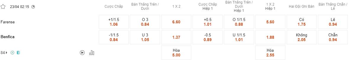 Benfica đã dẫn trước ở hiệp 1 trong ⅔ trận gần đây. Cửa cược của họ đã giúp bet thủ vượt ải thành công trong 4 lần mở kèo hiệp 1 gần nhất trên mọi mặt trận. Trong khi đó, Farense thường gặp khó khăn trong việc bảo vệ lưới nhà ở hiệp 1. Do đó, việc chọn Benfica thắng kèo hiệp 1 có thể là một lựa chọn hợp lý dựa trên phong độ của cả hai đội.