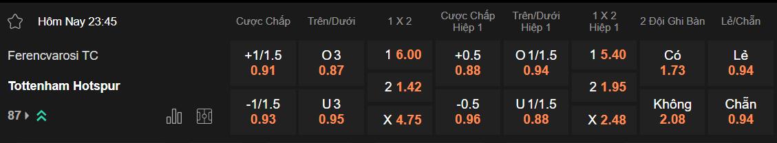 Soi kèo hiệp 1 Ferencvaros vs Tottenham