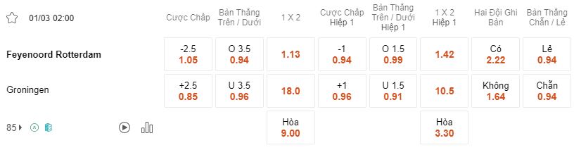 Soi kèo hiệp 1 Feyenoord vs Groningen