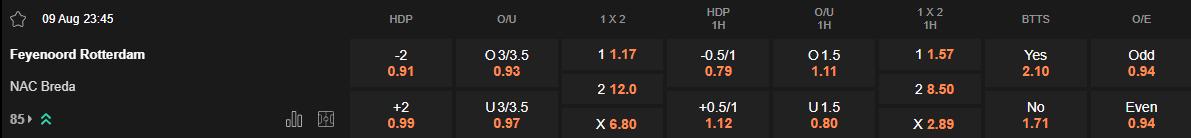 Soi kèo châu Á Feyenoord vs NAC Breda