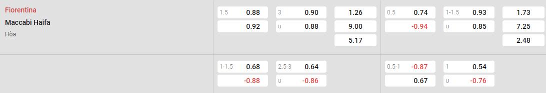 Soi kèo Châu Á Fiorentina vs Maccabi Haifa
