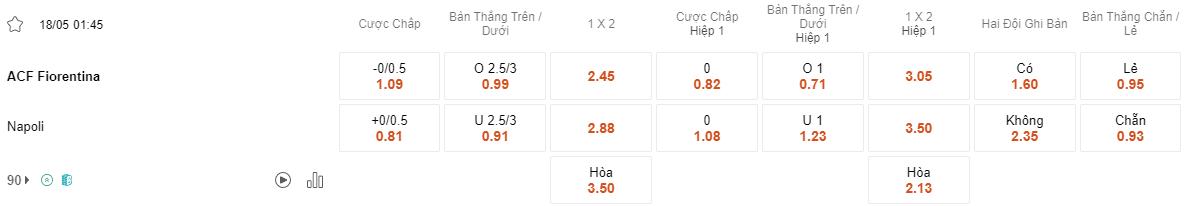 Soi kèo Fiorentina vs Napoli lúc 1h45 ngày 18/5/2024