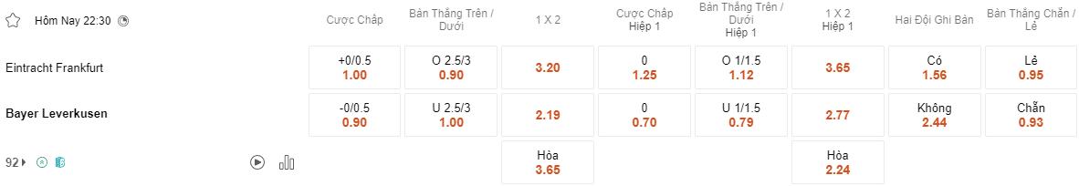Soi kèo hiệp 1 Frankfurt vs Leverkusen