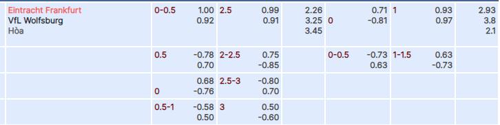 Soi kèo Châu Á Frankfurt vs Wolfsburg