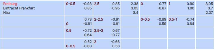 Soi kèo Châu Á Freiburg vs Frankfurt