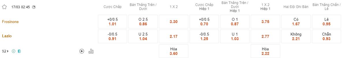 Soi kèo hiệp 1 Frosinone vs Lazio
