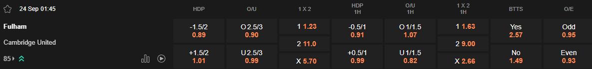 Soi kèo hiệp 1 Fulham vs Cambridge