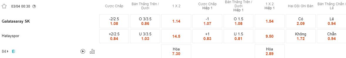 Galatasaray đã ghi tổng cộng 16 bàn trong 5 trận gần nhất tại giải VĐQG Thổ Nhĩ Kỳ, với một trung bình 3 bàn mỗi trận. Trong khi đó, Hatayspor cũng không kém phần hiệu quả trong phần công ghi được 6 bàn trong 3 trận gần nhất. Thêm vào đó, lịch sử gặp nhau giữa hai đội thường diễn ra với nhiều bàn thắng. Trong 5 trận đối đầu gần nhất, 4 trận kết thúc với tổng số bàn thắng trên 2.5. Với các yếu tố trên, giới chuyên gia BONGDAINFO đặt niềm tin vào kèo Tài cho trận đấu này.