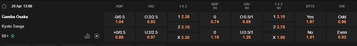 Soi kèo hiệp 1 Gamba Osaka vs Kyoto Sanga