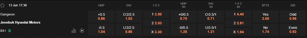 Tỷ lệ kèo Gangwon vs Jeonbuk