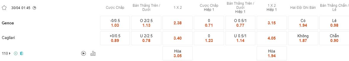 Soi kèo hiệp 1 Genoa vs Cagliari