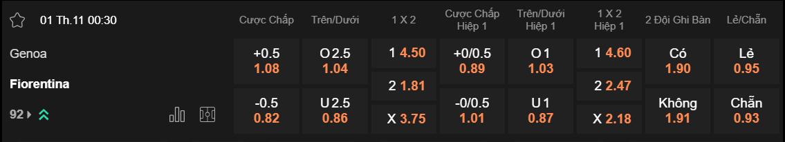 Soi kèo hiệp 1 Genoa vs Fiorentina