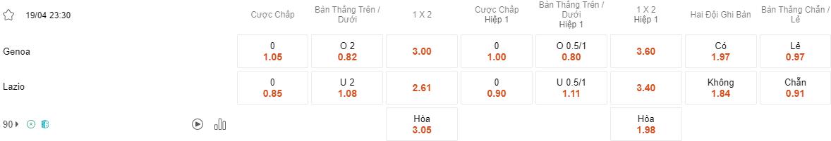 Soi kèo Genoa vs Lazio lúc 23h30 ngày 19/4/2024