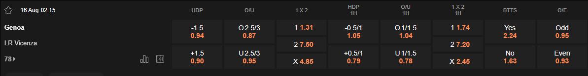 Soi kèo hiệp 1 Genoa vs Vicenza