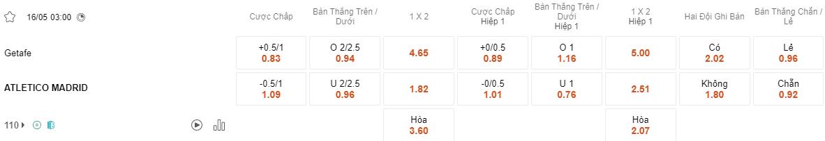 Soi kèo hiệp 1 Getafe vs Atletico Madrid