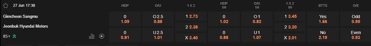 Soi kèo hiệp 1 Gimcheon vs Jeonbuk