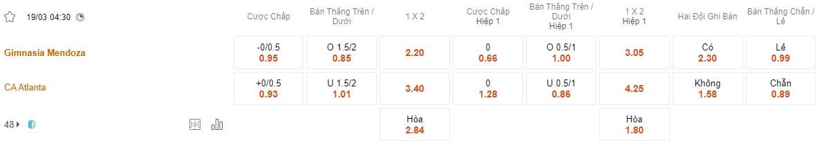 Soi kèo hiệp 1 Gimnasia Mendoza vs Atlanta