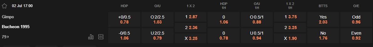 Soi kèo hiệp 1 Gimpo vs Bucheon