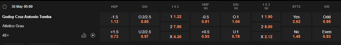 Ở trận lượt đi, Godoy Cruz cũng đã ghi bàn từ hiệp 1 và kiểm soát hoàn toàn thế trận. Trong bối cảnh Atletico Grau có xu hướng nhập cuộc chậm và phòng ngự không chặt chẽ, việc đội chủ nhà sớm vươn lên dẫn trước là điều dễ xảy ra. Với lợi thế sân nhà và tâm lý hưng phấn khi đã chắc suất đi tiếp, thầy trò HLV Pedernera Ernesto có thể “kết liễu” đối thủ ngay từ 45 phút đầu tiên. Với phong độ ấn tượng và sự vượt trội về trình độ, Godoy Cruz hoàn toàn có thể khép lại vòng bảng một cách trọn vẹn bằng chiến thắng thứ 4. Trong khi đó, Atletico Grau gần như không còn động lực và khó tạo nên bất ngờ trên đất Argentina.