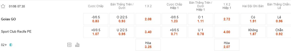 Sân nhà là một yếu tố quan trọng có thể giúp Goias tạo ra sức ép lên đối thủ và tận dụng cơ hội để giành chiến thắng. Theo thống kê, cửa cược của họ đã giúp bet thủ vượt ải thành công trong cả 4 lần mở kèo gần nhất tại đây. Trong khi đó, Sport Recife đang là một điểm cược kém hấp dẫn khi khiến bet thủ thua kèo trong 3/4 lần mở cược vừa qua.