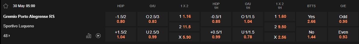 Tỷ lệ kèo Gremio vs Sportivo Luqueno