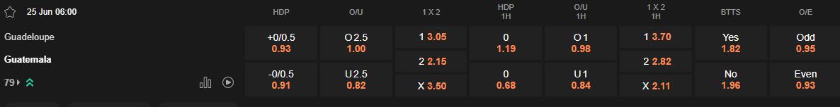 Trong cả hai trận đấu đầu tiên tại Gold Cup năm nay, Guadeloupe đều thể hiện sự chủ động và tốc độ trong 30 phút đầu tiên. Họ thường tìm kiếm bàn thắng sớm để chiếm lợi thế, nhất là khi buộc phải thắng ở trận này. Guatemala thường không ghi bàn trong hiệp 1. Việc họ chỉ có 1 cú sút trúng đích trước Panama là minh chứng rõ cho việc hàng công thiếu tính sáng tạo. Nếu Guadeloupe tiếp tục nhập cuộc tốt như hai lượt đấu trước, khả năng họ vươn lên dẫn trước trong hiệp 1 là rất cao.