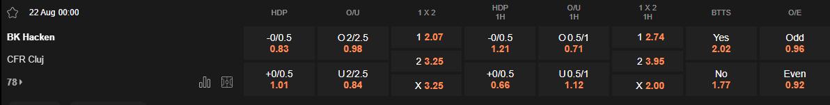 Hacken thường nhập cuộc tốt khi được thi đấu trên sân nhà. Trước Brann, họ cũng sớm tạo ra thế trận dồn ép và tìm được bàn thắng quan trọng. Được cổ vũ bởi khán giả nhà, Hacken chắc chắn sẽ dâng cao đội hình ngay từ đầu để tìm lợi thế. Ngược lại, Cluj có thói quen nhập cuộc chậm. Trong những chuyến hành quân xa, họ thường tập trung vào phòng ngự nhưng lại dễ bị thủng lưới sớm bởi sự thiếu chắc chắn ở hàng thủ. Với bối cảnh đó, khả năng Hacken vươn lên dẫn trước ngay trong 45 phút đầu tiên là rất sáng sủa.