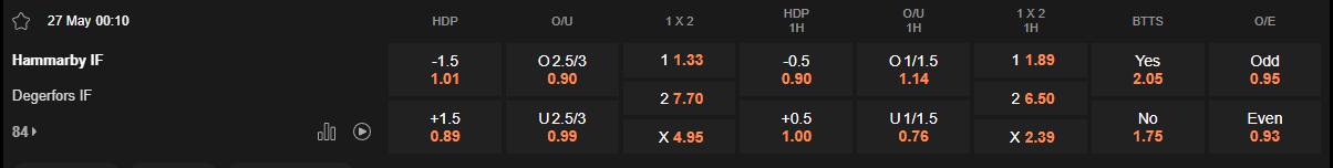 Tỷ lệ kèo Hammarby vs Degerfors