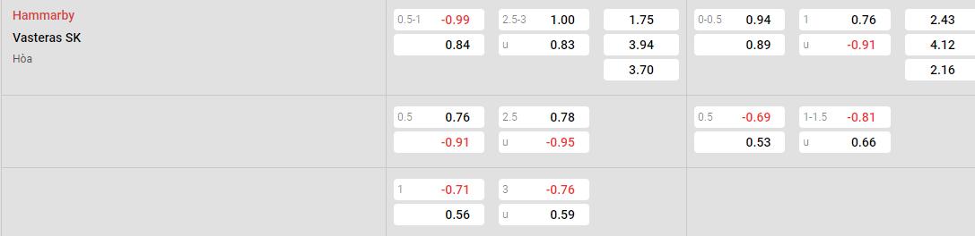 Với phong độ ấn tượng trên sân nhà, Hammarby thường nhập cuộc đầy chủ động. Khi mà có 4/5 lần ra quân gần nhất, họ ghi bàn trong hiệp 1. Bên kia chiến tuyến, Vasteras lại chơi phòng ngự không tốt trên sân khách. Với việc 3/5 trận gần nhất, họ phải nhận bàn thua ở 45 phút đầu tiên. Do đó, khả năng cao Hammarby sẽ ghi bàn trong hiệp 1 trận này.