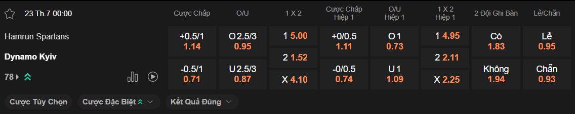 Thống kê cho thấy Hamrun có trung bình khoảng 1.5 bàn/trận và chỉ khoảng 17% trận vượt mức 2.5 bàn. Dynamo thì có tỷ lệ Over cao hơn nhưng không quá bùng nổ – chỉ khoảng 40% các trận gần đây vượt mốc 2.5. Tổng hòa lại, trận đấu có thể diễn ra với thế trận chặt chẽ và ít bàn thắng. Hamrun tập trung phòng ngự và Dynamo Kiev cũng không cần dâng cao quá sớm, họ thường tận dụng khoảng trống trong hiệp 2 để phản công. Vì vậy kịch bản trận này dễ về Xỉu hơn Tài.