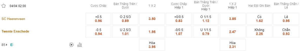 Soi kèo hiệp 1 Heerenveen vs Twente