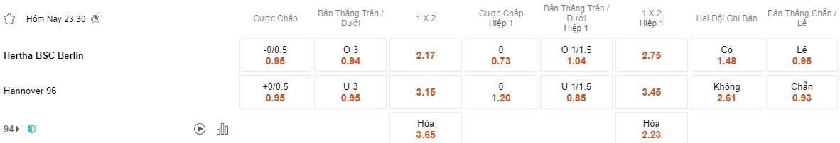 Soi kèo châu Á Hertha Berlin vs Hannover