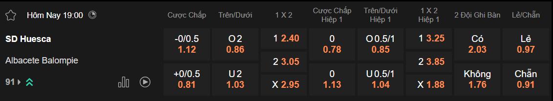 Soi kèo hiệp 1 Huesca vs Albacete