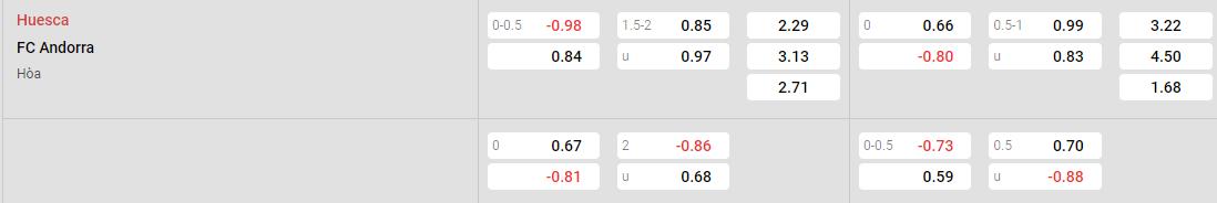Huesca sẽ có thêm sự tự tin trong cuộc chạm trán này, khi mà họ được chơi trên sân nhà. Nhất là khi, phong độ sân nhà của họ cũng đang có được sự ổn định. Với việc giành 3 chiến thắng sau 5 trận gần nhất. Thêm vào đó, Huesca thường chơi tốt mỗi khi tiếp đón các vị khách Andorra trên sân nhà. Khi mà trong 3 trận gần nhất, họ đã giành được 2 chiến thắng.