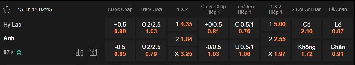 Soi kèo hiệp 1 Hy Lạp vs Anh