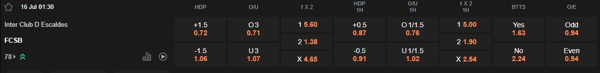 Tỷ lệ kèo Inter Escaldes vs FCSB