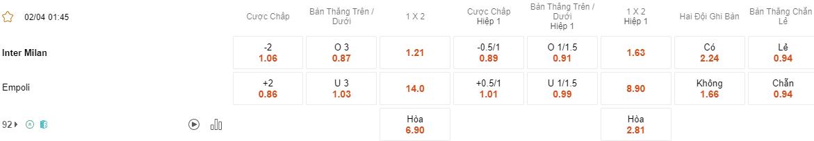 Với sự ổn định của đội bóng dẫn đầu Serie A, Inter thường có khuynh hướng chiếm ưu thế từ đầu trận đấu. Trong 10 trận đấu gần nhất của họ tại San Siro, Inter đã thành công dẫn bàn ở hiệp 1 tới 8 trận. Trong khi đó, Empoli đã gặp khó khăn khi không ghi được bàn nào trong 3 trận đấu liên tiếp. Điều này càng tạo ra lợi thế cho Inter trong hiệp 1, khi họ sẽ cố gắng tấn công sớm để tận dụng sự thiếu tự tin của Empoli.