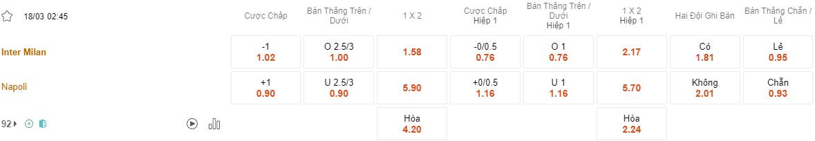Napoli cũng không phải là đối thủ dễ dàng. Dù đã gặp một số khó khăn trong mùa giải này, nhưng đội bóng này vẫn sở hữu những tài năng hàng đầu như Victor Osimhen và Khvicha Kvaratskhelia. Napoli sẽ không từ bỏ dễ dàng và sẽ tìm kiếm mọi cơ hội để ghi điểm trước đối thủ mạnh như Inter Milan. Dẫu vậy, việc khiến bet thủ ôm hận trong 4/5 lần mở kèo trên sân khách gần nhất biến cửa cược của họ trở thành điểm đến kém hấp dẫn.