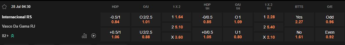 Soi kèo tài xỉu Internacional vs Vasco da Gama