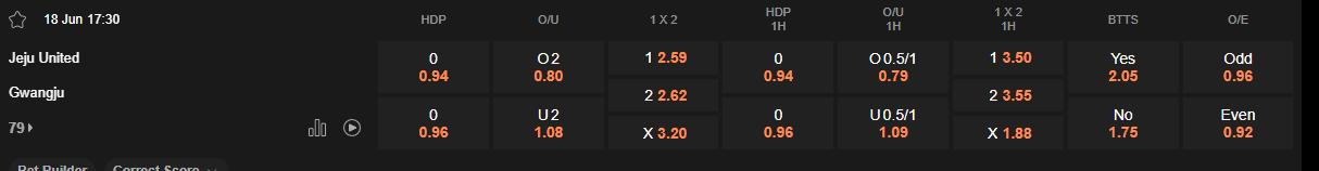 Soi kèo hiệp 1 Jeju vs Gwangju