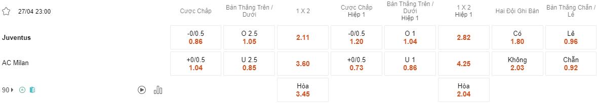 Dù đang trải qua một thời kỳ khó khăn ở Serie A với chỉ 2 chiến thắng trong 9 trận gần nhất, Juventus vẫn giữ được sự ổn định khi đá trên sân nhà. Họ chỉ thua 1 trận trong 16 trận tại Allianz Stadium mùa này. Cửa cược của họ đã giúp bet thủ vượt ải thành công trong 2 lần mở kèo trên sân nhà gần đây. Với mục tiêu giành ngôi á quân Serie A và cứu vãn một mùa giải khó khăn, Juventus sẽ quyết tâm giành chiến thắng trước Milan.