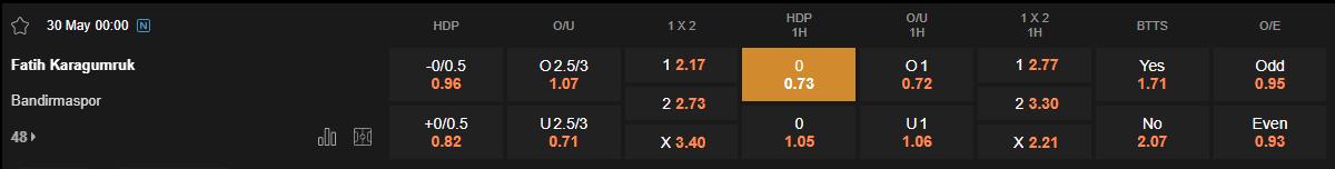 Bandirmaspor là đội thường nhập cuộc chủ động. Họ đã ghi bàn trong hiệp 1 ở cả 3/4 trận gần nhất. Điều cho thấy họ có sự chuẩn bị tốt về chiến thuật lẫn tâm lý. Trong khi đó, Karagumruk lại thường tỏ ra lúng túng ở giai đoạn nhập cuộc, đặc biệt là khi gặp áp lực từ các đội chơi pressing tầm cao như Bandirmaspor. Với lợi thế phong độ và tinh thần lên cao, khả năng Bandirmaspor sớm vươn lên dẫn trước trong 45 phút đầu tiên là rất lớn.