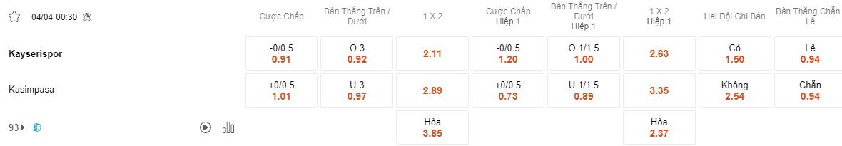 Soi kèo hiệp 1 Kayserispor vs Kasimpasa