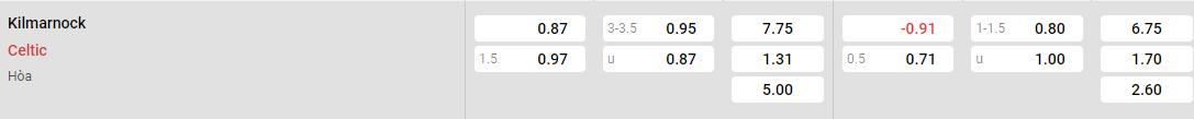 Soi kèo Châu Á Kilmarnock vs Celtic