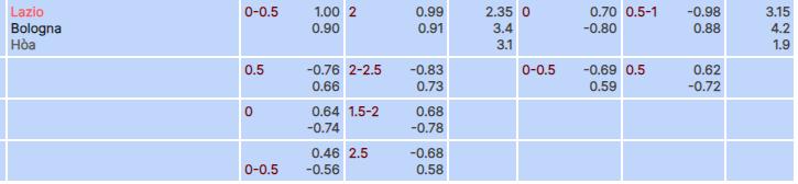 Tỷ lệ kèo Lazio vs Bologna