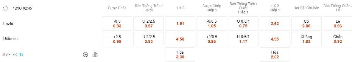 Dù có sự ổn định kém hơn, nhưng Udinese có thể tận dụng được sự thiếu tự tin của Lazio để tạo ra bất ngờ. Với một lịch sử gặp khó khăn trước đối thủ này, Udinese sẽ đặt mục tiêu cao và cố gắng giành chiến thắng để cải thiện vị trí của mình trong cuộc đua trụ hạng. Theo thống kê, trong 4 lần đón tiếp Udinese gần nhất, Lazio đều phải nhận thất bại kèo một cách đầy đáng tiếc.